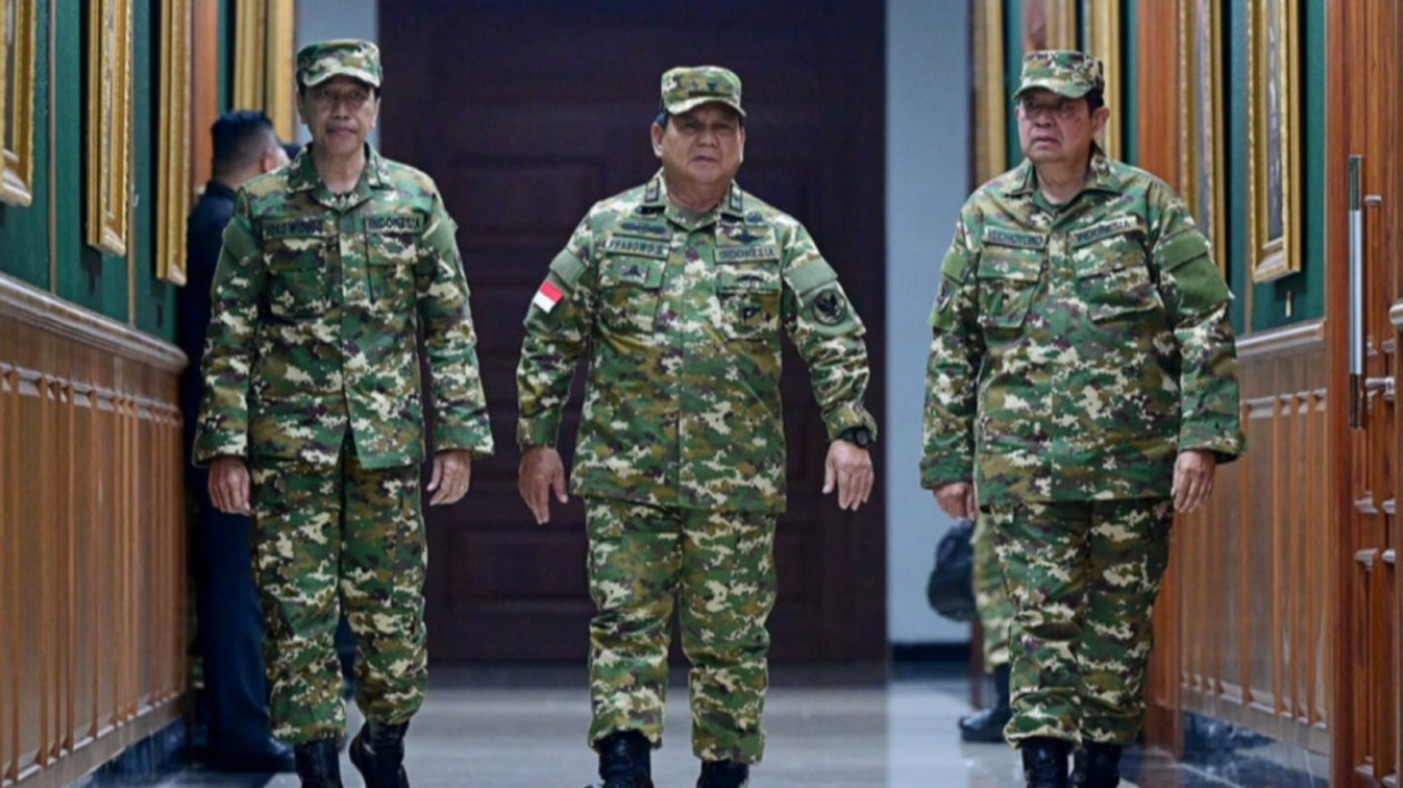 Mengenakan seragam loreng yang sama, Prabowo bersama Presiden ke-6 Susilo Bambang Yudhoyono dan Presiden ke-7 Joko Widodo (Jokowi) kompak menyanyikan sejumlah lagu. Momen yang diunggah Bahrun Najach melalui media sosial Instagram itu pun mengundang komentar para warganet yang kagum melihat kekompakan tersebut.