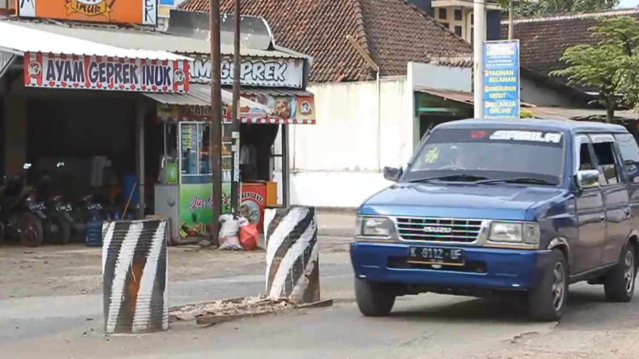 Agar tidak menambah timbulkan korban kecelakan, terlihat di lokasi, warga berupaya memasang rambu-rambu di tengah jalan dengan menggunakan tong bekas. (Agw/Dan)