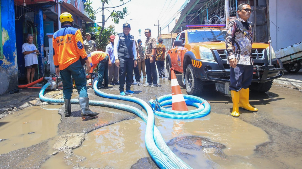 Subandi menjelaskan bahwa jalan berlubang di lokasi itu akan segera diperbaiki. Namun karena masih ada genangan, maka fokus sementara adalah membuang airnya dengan pompa air dari BPBD Jatim.
