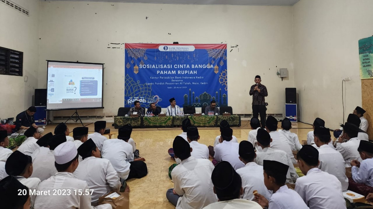 Kediri, tvOnenews.com - Kantor Perwakilan Bank Indonesia Kediri menyelenggarakan edukasi Cinta, Bangga, Paham (CBP) Rupiah kepada 400 santri Pondok Pesantren (Ponpes) Al Falah, Ploso, Kabupatrn Kediri. Hal itu untuk meningkatkan kepedulian generasi muda terhadap uang rupiah dan mengawali rangkaian Semarak Rupiah Ramadhan dan Berkah Idul fitri (SERAMBI)