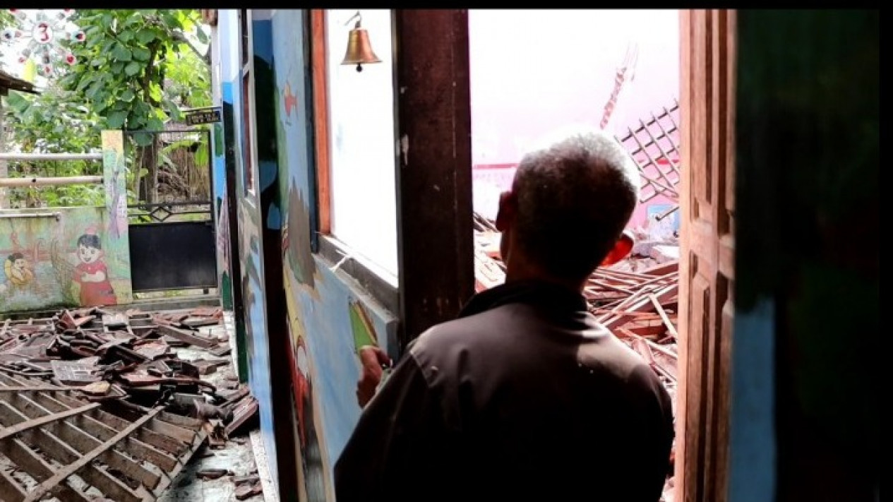 Atap Sekolah TK di Ponorogo Roboh, Puluhan Siswa Diungsikan