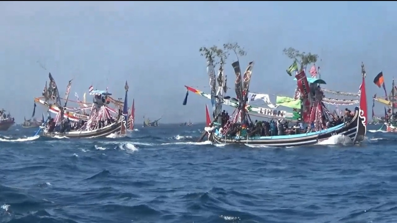 Pertengahan Bulan Suro, Nelayan di Muncar Banyuwangi Larung Sesaji di Selat Bali