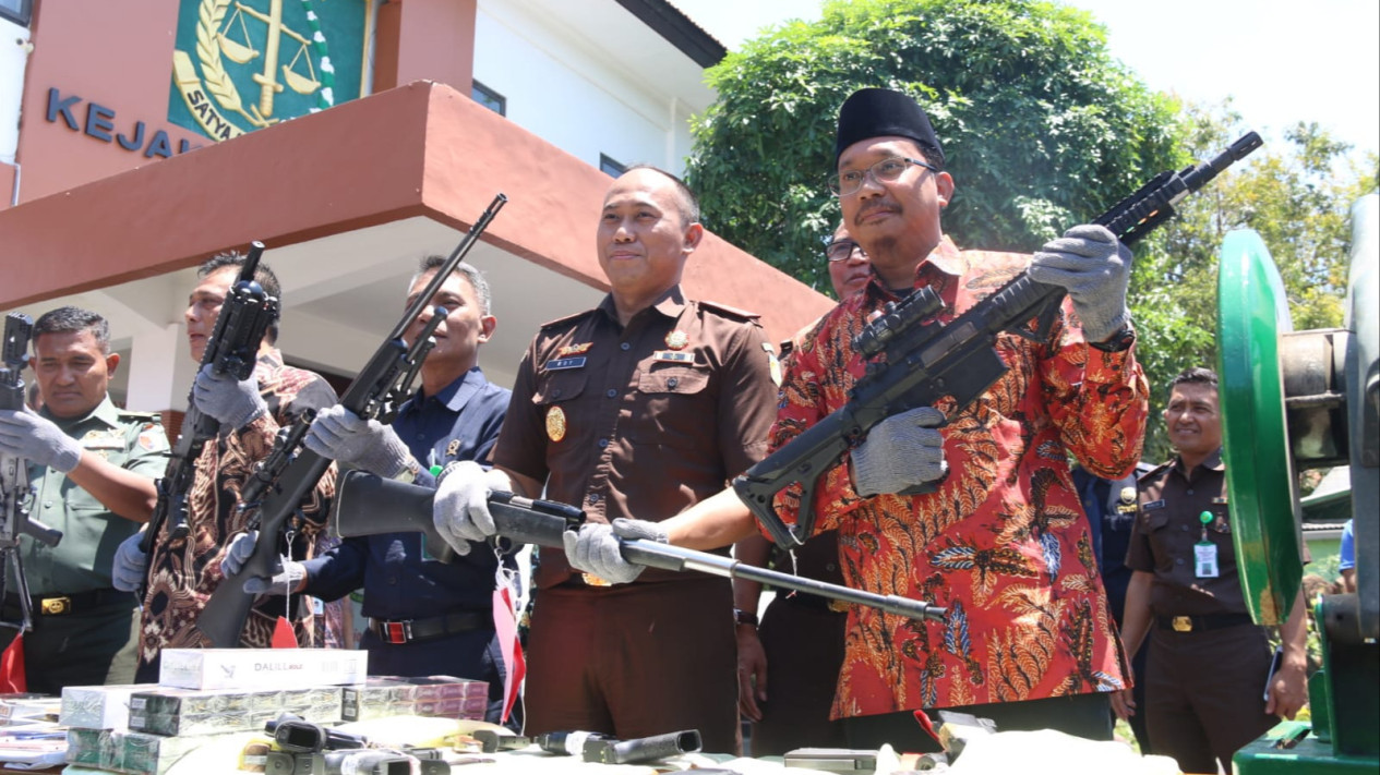 Kepala Kejaksaan Negeri Sidoarjo, Roy Rovalino Herudiansyah mengatakan Forkopimda Kabupaten Sidoarjo saat ini memusnahkan barang bukti senjata api rakitan yang sudah berkekuatan hukum.