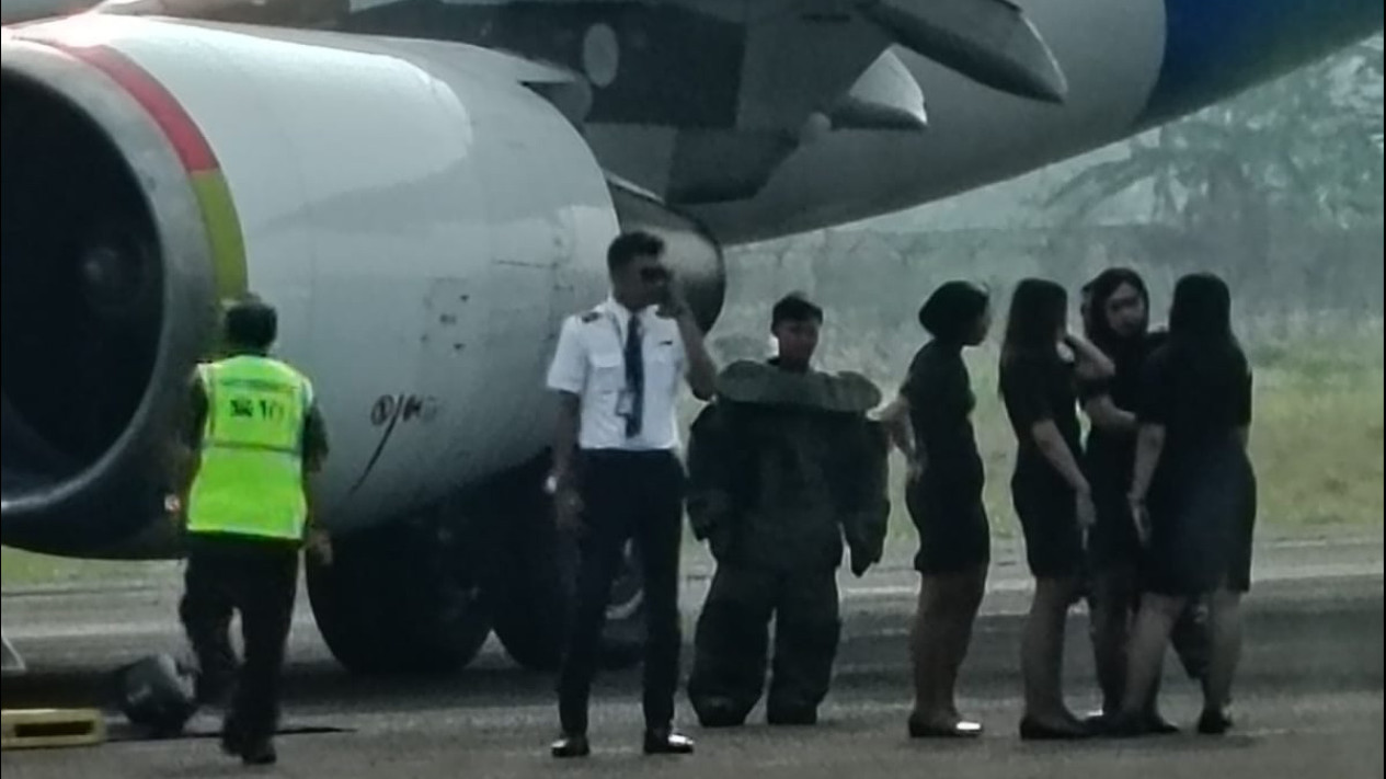 Menindaklanjuti hal tersebut pesawat diarahkan ke isolated parking area, untuk dilakukan pemeriksaan lebih lanjut oleh petugas gabungan Bandara Juanda. Hasil pemeriksaan tidak ditemukan ancaman dimaksud.