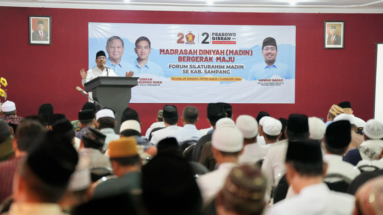 "Karena bagaimanapun guru ngaji adalah pahlawan tanpa jasa ya, andaikan tidak disuarakan ke atas mungkin sulit didengar. Maka pertemuan kali ini menjadi kesempatan untuk menyampaikan aspirasi melalui Ketua Gerindra Jatim Anwar Sadad untuk disampaikan ke Prabowo-Gibran," ujarnya.