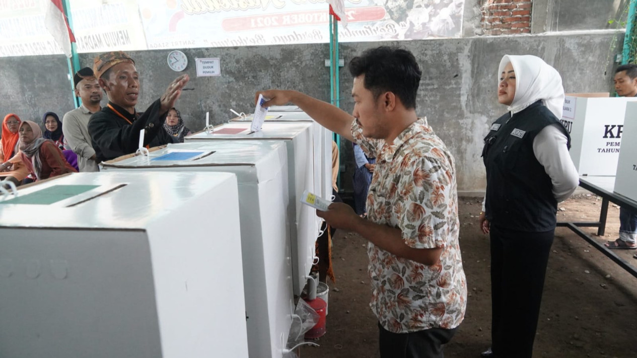 "Alhamdulillah titik-titik yang kita kunjungi berjalan dengan tertib, aman, lancar semuanya mengalir. Masyarakat berdatangan dan kemudian sabar untuk mengantri menggunakan hak pilihnya dan kemudian berakhir dengan pemberian tanda pada jari kelingkingnya," ucap Bupati Ikfina.