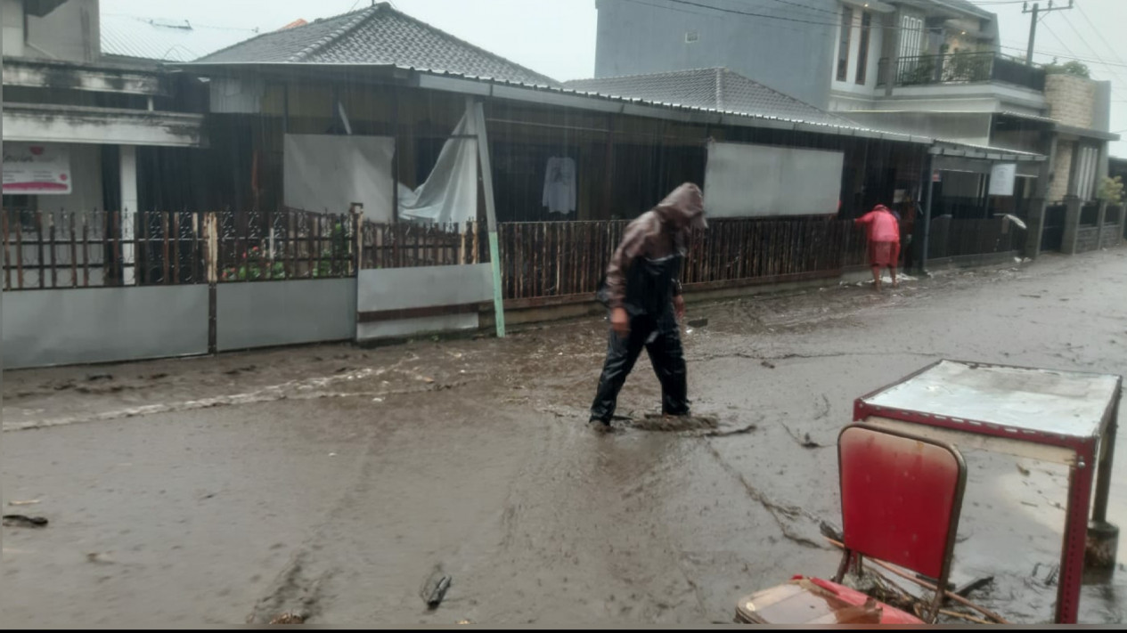 "Benar mas, hujan dengan intensitas tinggi di Kecamatan Bumiaji menyebabkan naiknya debit air kali paron. Air meluap ke Jalan Hasanudin, Dusun Beru dan menyebabkan beberapa rumah warga terdampak tergenang air dan material lumpur,"kata Agung.