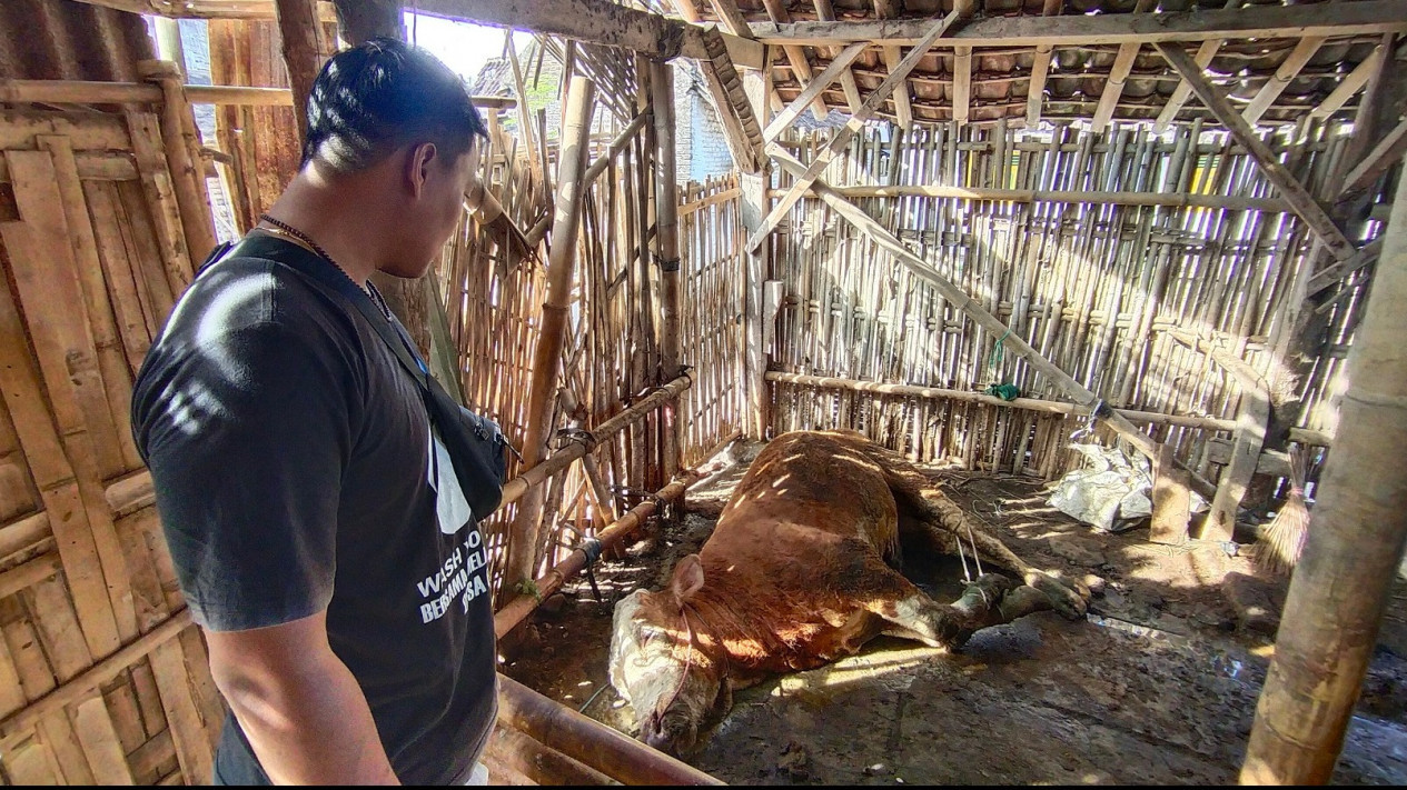 Akibat kematian sapinya yang memiliki berat 4 kwintal ini, Satumar mengalami kerugian hingga Rp25 juta.