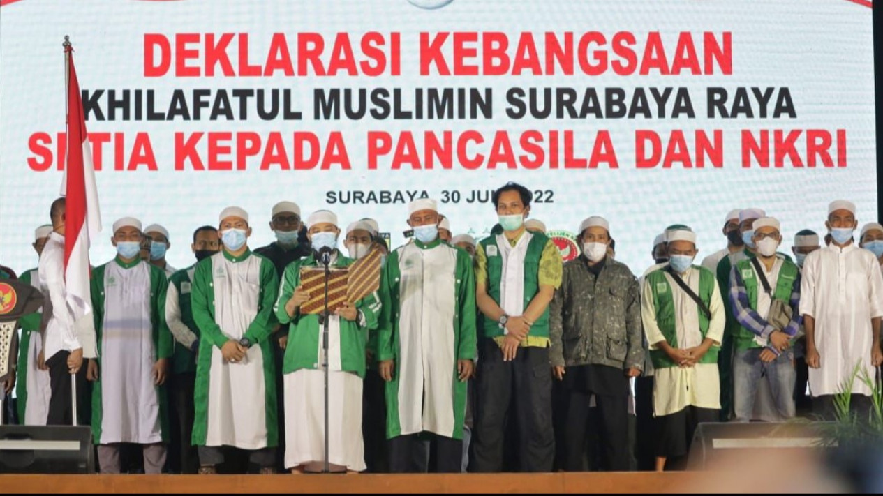 Deklarasi Kebangsaan setia kepada Pancasila dan NKRI tersebut dilakukan di hadapan Forum Komunikasi Pimpinan Daerah (Forkopimda) Jawa Timur, Forkopimda Surabaya dan tokoh agama.