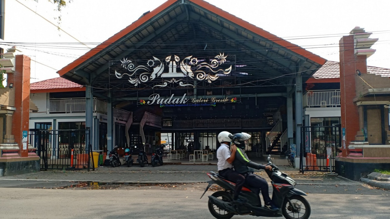Gresik, Jawa Timur - Gedung pusat produk unggulan dan aneka kuliner (Pudak Galeri) yang mulai dibangun di era pemerintahan dua periode (2010- 2020) silam oleh Bupati Gresik Sambari Halim Radianto dan Wakil Bupati Mohammad Qosim, kini hanya menjadi peninggalan bangunan yang dianggap mubazir.