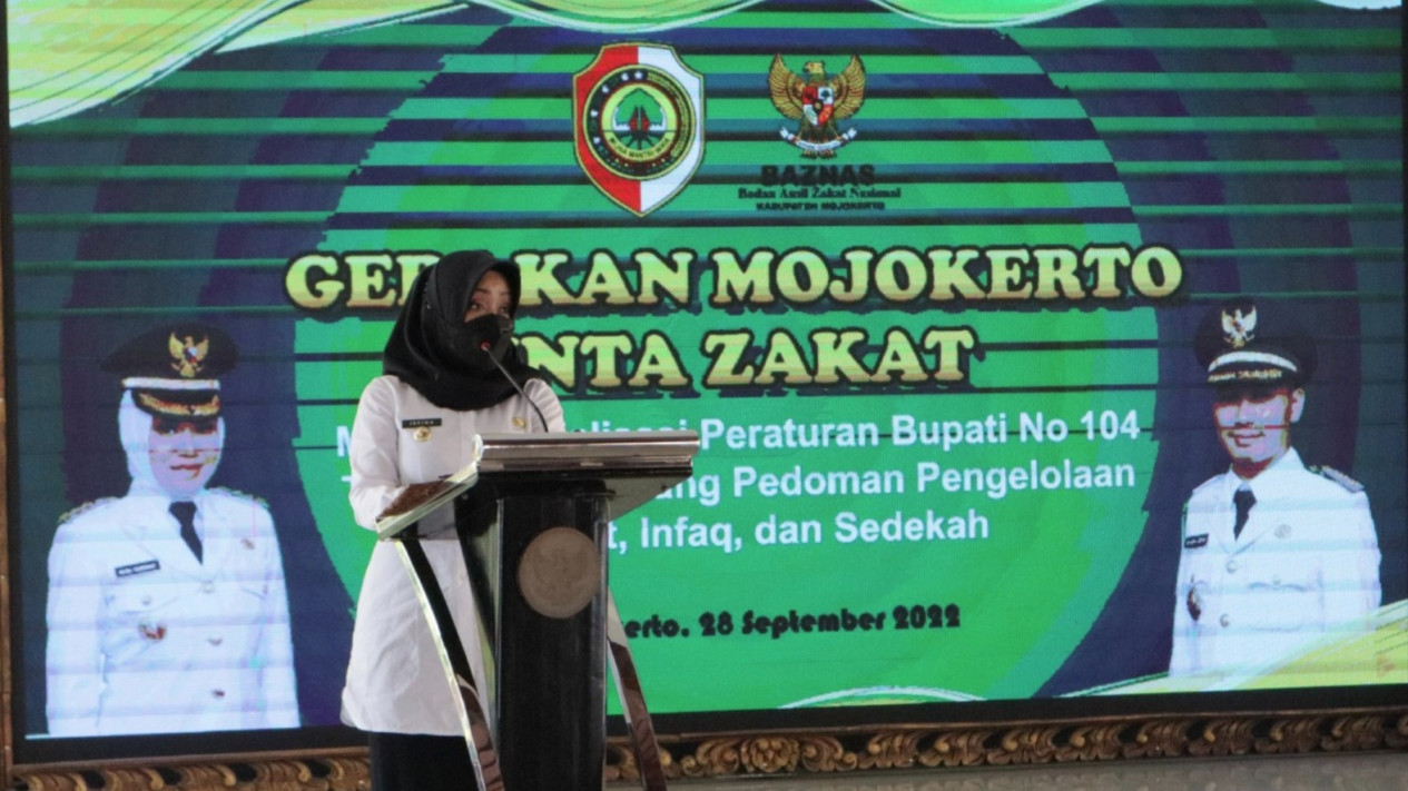 Mojokerto, Jawa Timur - Pemerintah Kabupaten Mojokerto menggelar sosialisasi soal Peraturan Bupati (Perbup) Nomor 104 tahun 2021 tentang Pedoman Pengelolaan Zakat, Infaq dan Sedekah. Dalam agenda kali ini, Bupati Mojokerto, Ikfina Fahmawati menggelorakan Gerakan Cinta Zakat bagi ASN serta menyampaikan pesan kepada seluruh Aparatur Sipil Negara (ASN) di lingkup Pemerintah Kabupaten Mojokerto agar turut berpartisipasi dalam pengelolaan zakat ini.