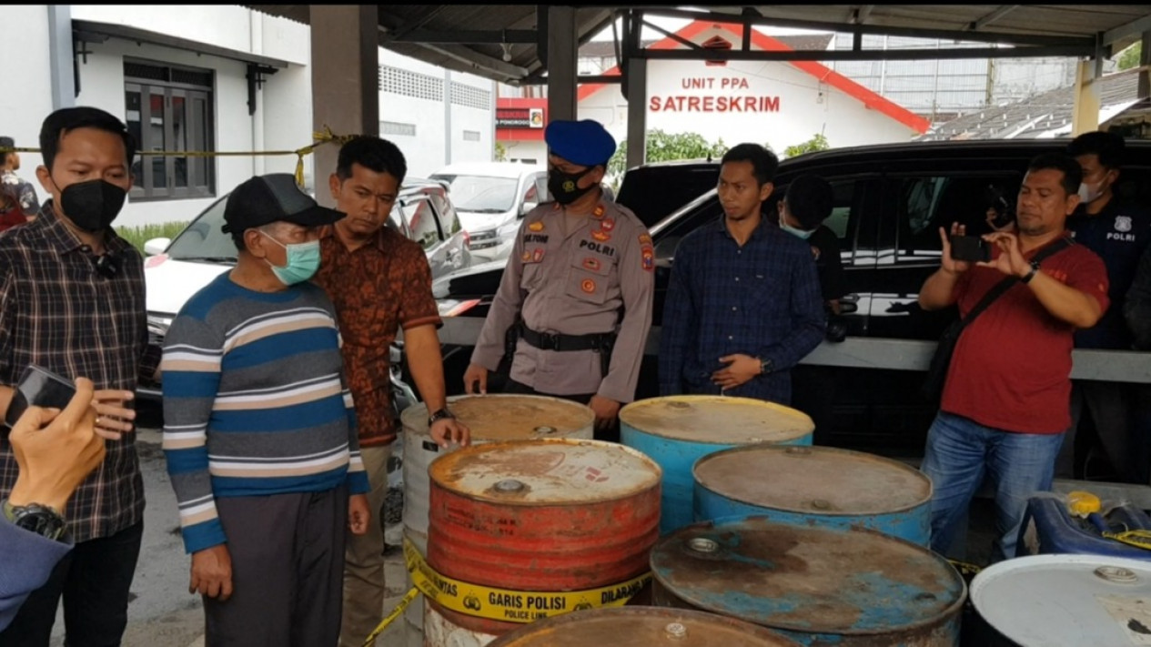 Barang bukti yang ditemukan di rumah tersangka, yakni drum berisi BBM jenis biosolar sebanyak 200 liter, 1 drum berisi BBM jenis biosolar sebanyak 200 liter, 5 drum berisi BBM jenis pertalite masing-masing drum berisi 200 liter.