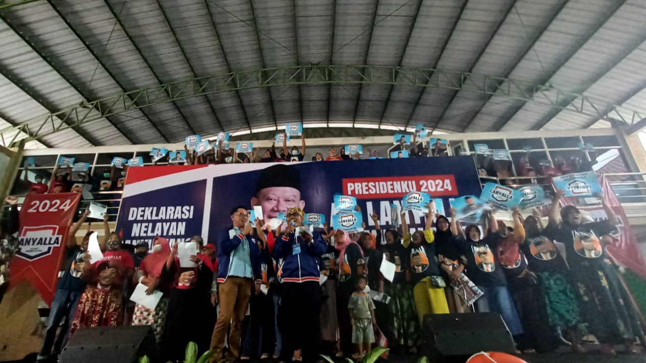 Banyuwangi, Jawa Timur - Komunitas nelayan di kabupaten Banyuwangi, Rabu (26/10) sore,  menggelar deklarasi dukungan ke Ketua DPD RI, La Nyalla Mattalitti maju dalam pencapresan pada pemilu 2024 mendatang. Salah satu alasannya, tokoh asal Surabaya ini dikenal tegas dan merakyat.