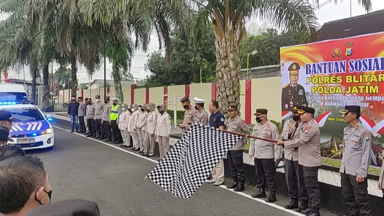 Blitar, Jawa Timur - Respon cepat untuk korban bencana gempa Cianjur dilakukan jajaran Kepolisian Resort Blitar. Dengan menggunakan mobil bok, ribuan paket sembako didistribukan kepada warga korban gempa kebupaten Cianjur, Jawa Barat.