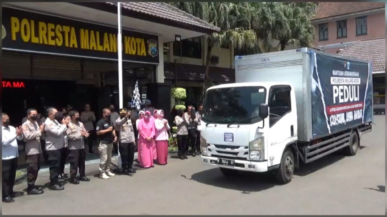 Sebanyak 1 truk diberangkatkan oleh Kapolresta Malang Kota Kombes Pol Budi Hermanto melalui Kabag Ops Kompol Supiyan menuju korban bencana di Cianjur. Truk membawa beras 1025 kg, gula 127 kg, minyak goreng 20 liter, mie instan 59 karton, susu 46 dus, biskuit 10 karton dan bubur bayi 10 karton. Selain itu, madu 8 botol, 10 karton teh, 5 karton sarden, 4 karton minuman gelas, 20 karton air mineral dan 50 dus paket sembako.