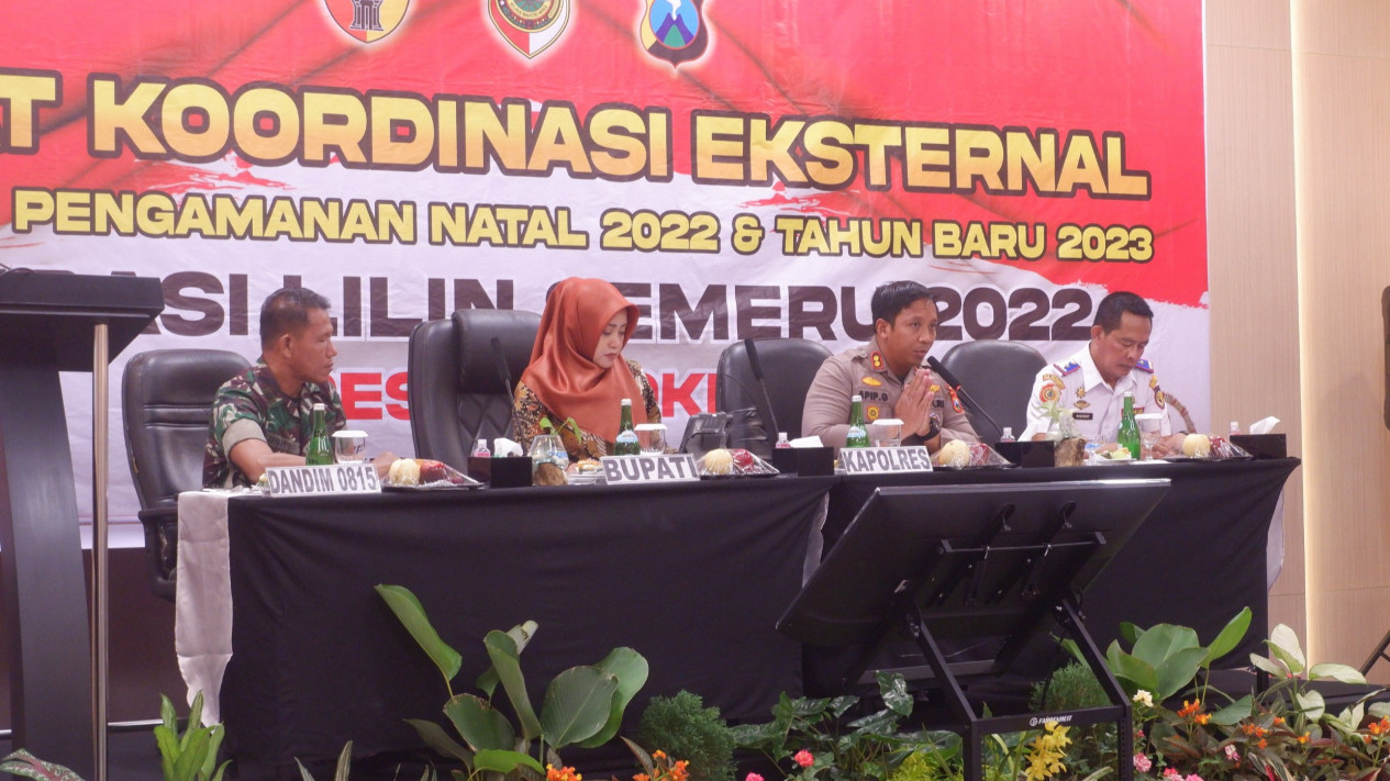 Mojokerto, Jawa Timur - Menjelang Natal 2022 dan Tahun Baru 2023, Forkopimda Kabupaten Mojokerto menggelar Rapat Koordinasi (Rakor) Eksternal kesiapan pengamanan Natal Tahun 2022 dan Tahun Baru 2023  di Kabupaten Mojokerto. Bupati Mojokerto meminta seluruh Forkopimda Kabupaten Mojokerto bisa bersinergitas dengan baik agar Nataru di Kabupaten Mojokerto bisa berjalan dengan aman dan damai.