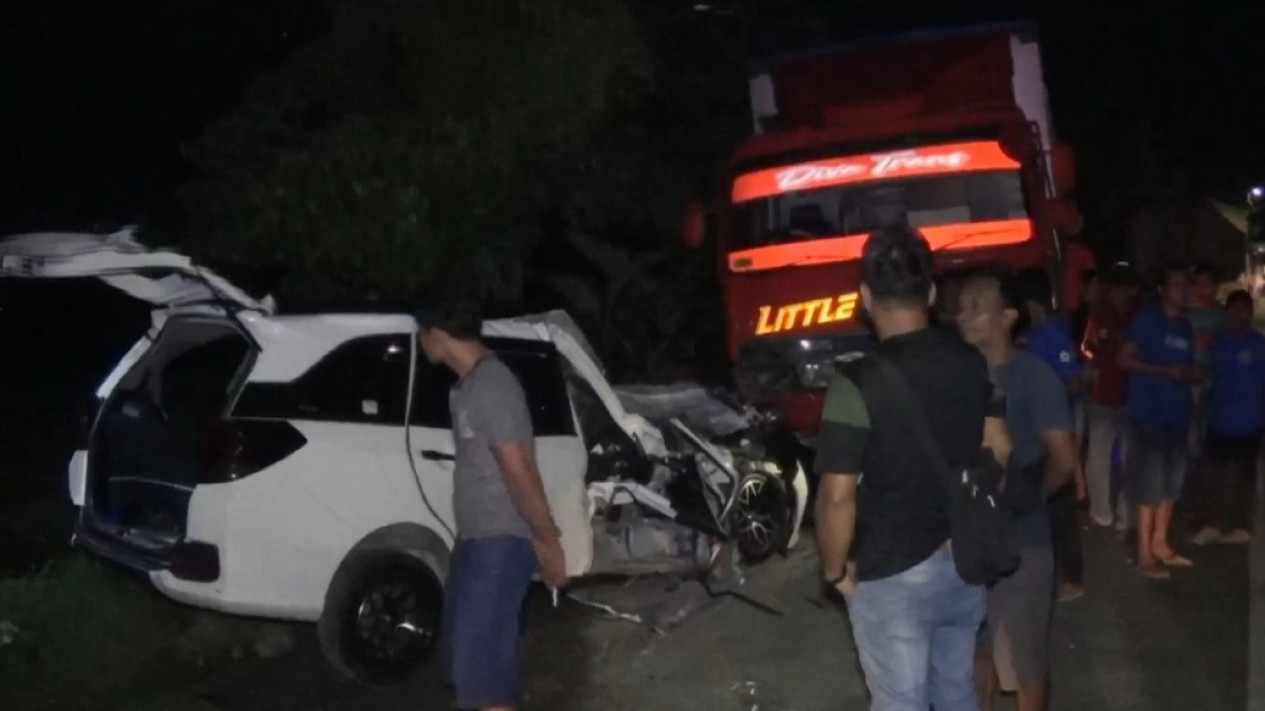 Sesampainya di lokasi kejadian, mobil tersebut hilang kendali di jalan tikungan dan menabrak pohon hingga oleng kemudian berhenti setelah menabrak truk tronton yang sedang parkir di tepi jalan.