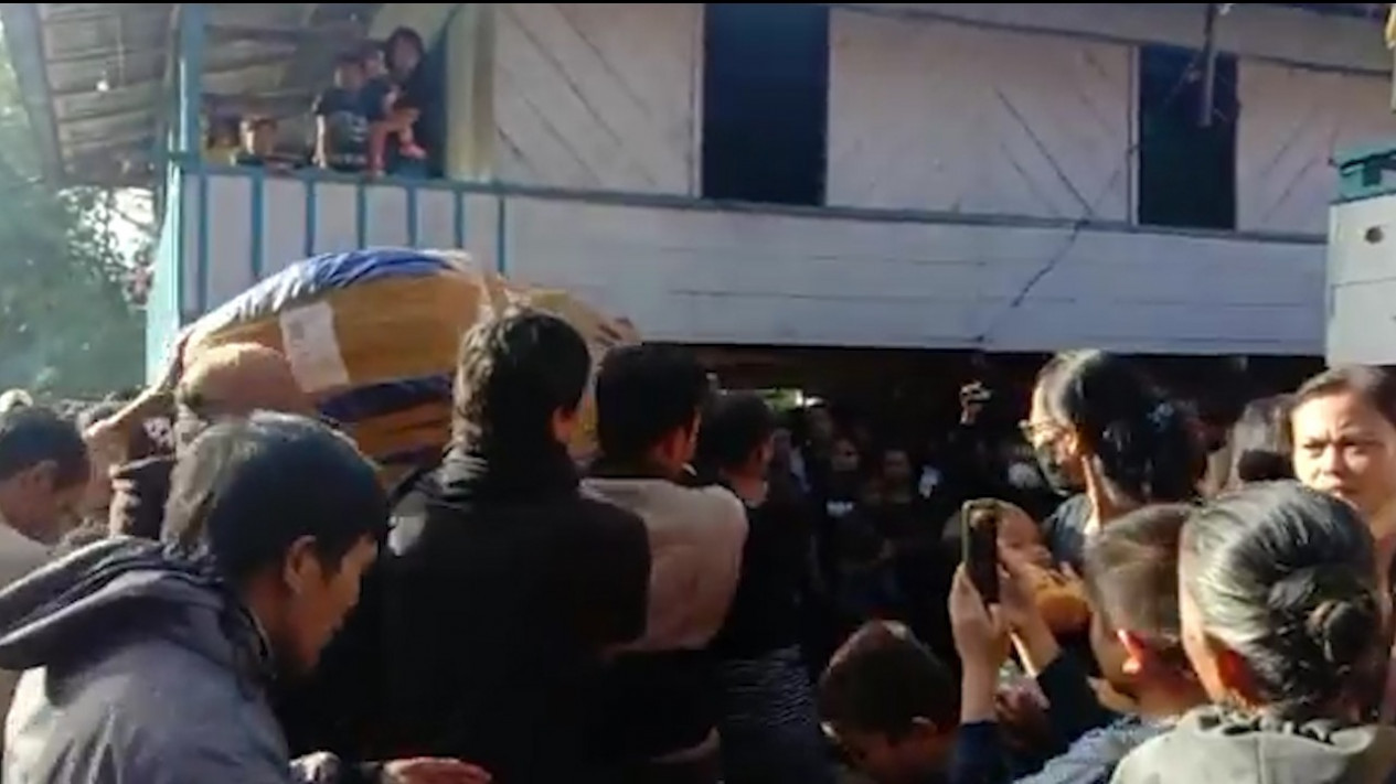 Toraja Utara, Sulawesi Selatan - Jenazah Almarhum Nober Palintin (31) tiba di kampung halamannya di Sa’dan Pebulian, Kabupaten Toraja Utara, Provinsi Sulawesi Selatan, Sabtu, (14/5/2022). Kedatangannya disambut tangis histeris keluarga.