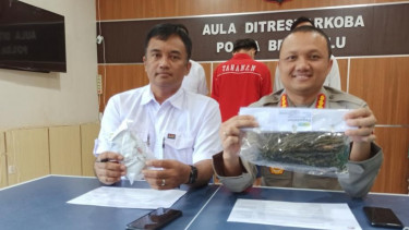 Kota Bengkulu, Bengkulu - Salah satu karyawan koperasi di Bengkulu inisial AA warga Ulu Musi, Empat Lawang, Provinsi Sumatera Selatan terciduk polisi. Ganja kering ini diselundupkan dalam karung beras menggunakan jasa travel dari Empat Lawang ke Provinsi Bengkulu.