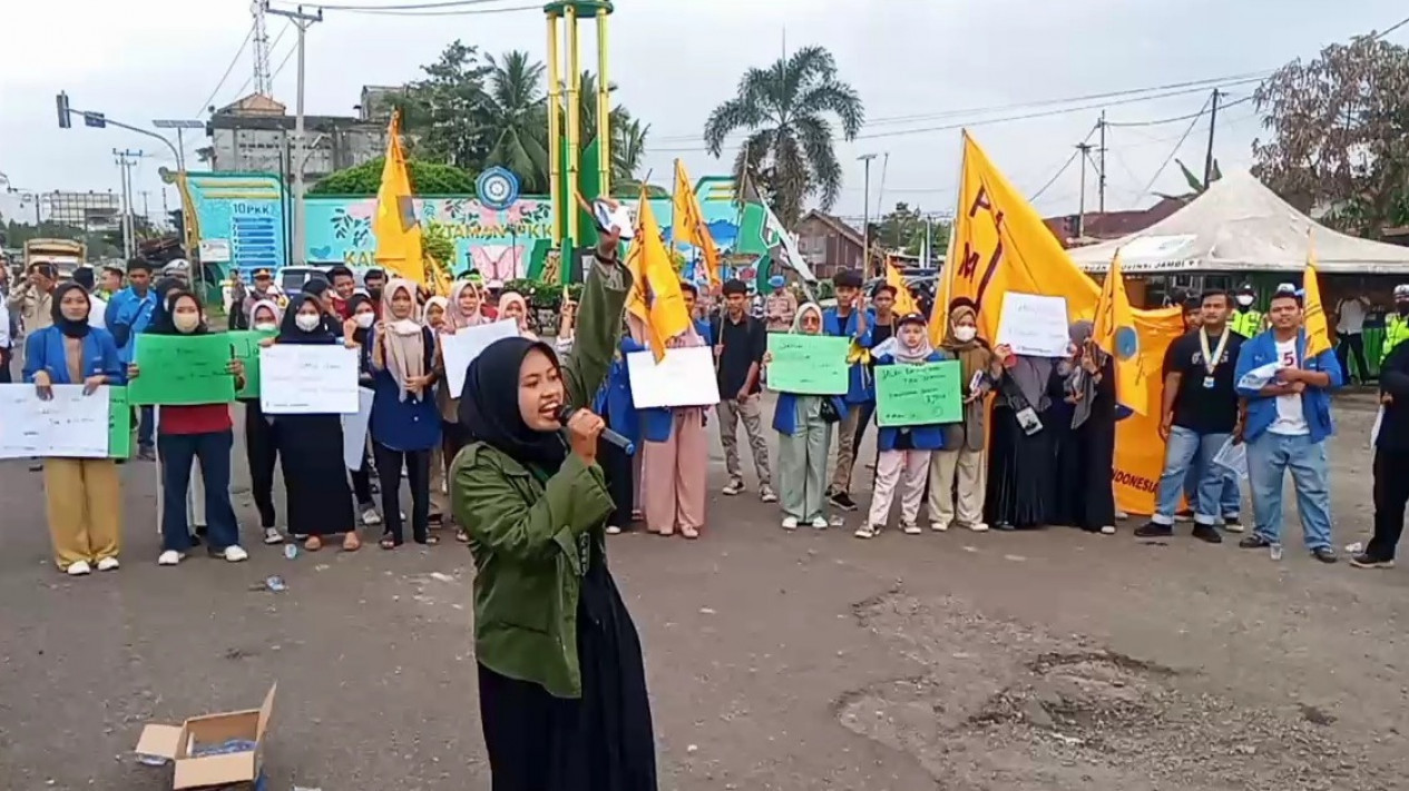 Selain itu, ratusan mahasiswa ini juga meminta agar Gubernur Jambi Al Haris memberikan pernyataan tentang perbaikan jalan di Kota Muara Bulian yang rusak akibat truk batubara.