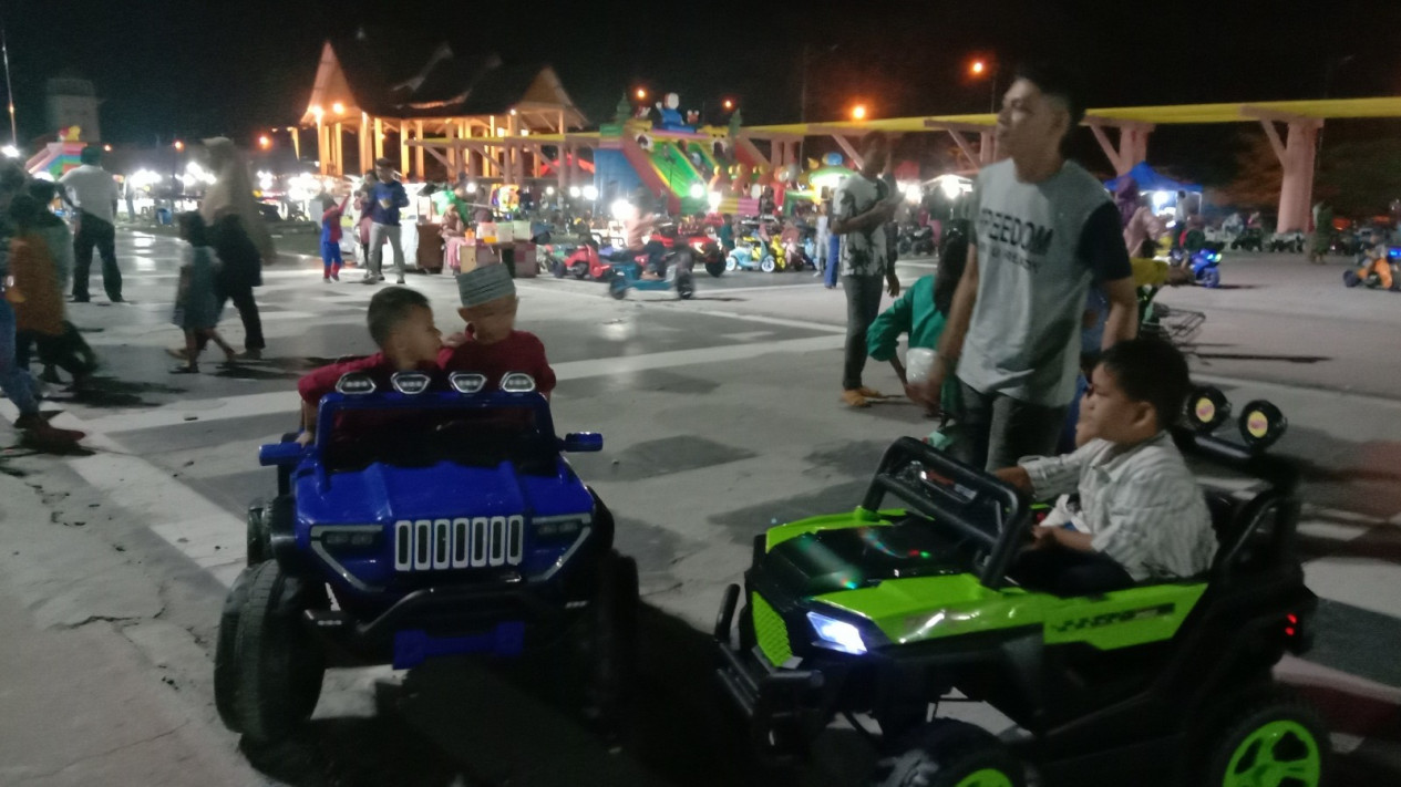 Salah satu penyewa permainan Nofri mengatakan wahana permainan ini hanya buka pada malam hari.