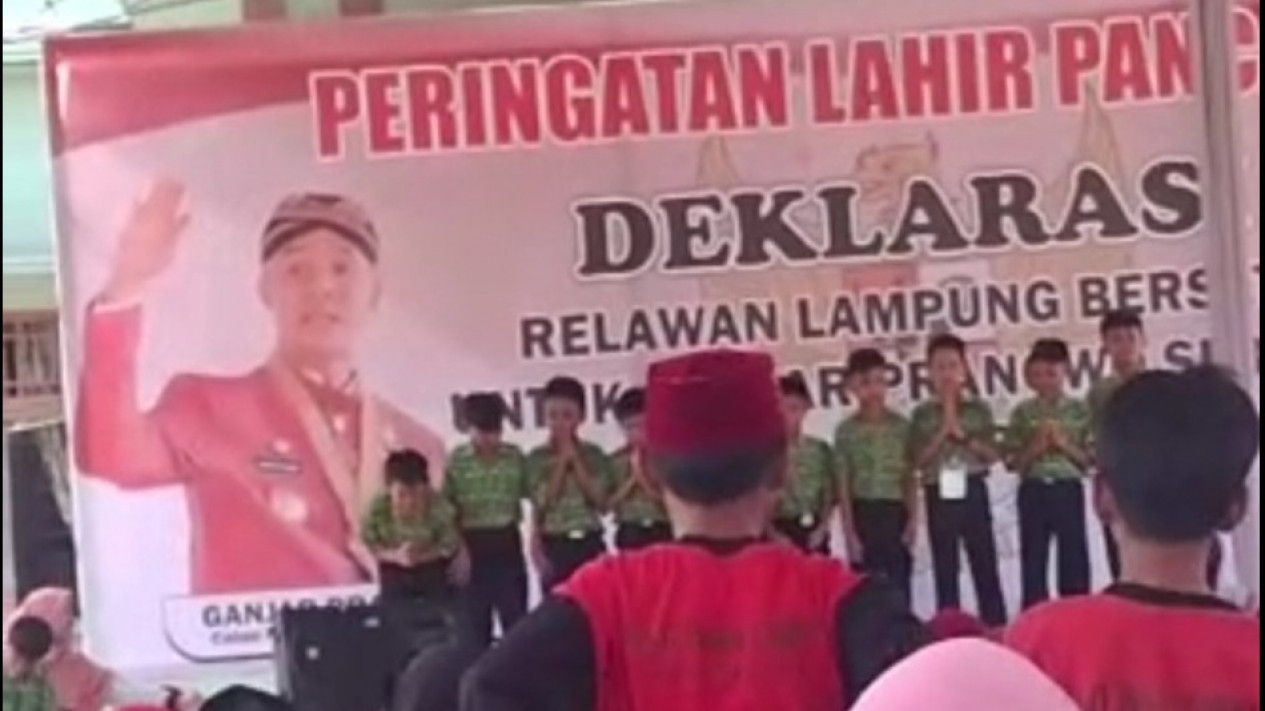 Bandar Lampung, tvOnenews.com - Aksi relawan Calon Presiden (Capres) Ganjar Pranowo di Lampung Selatan menjadi sorotan publik karena melibatkan anak-anak Sekolah Dasar (SD). Selain pelajar SD, guru di sekolah tersebut dilibatkan menjadi panitia dalam Peringatan Hari Kelahiran Pancasila.