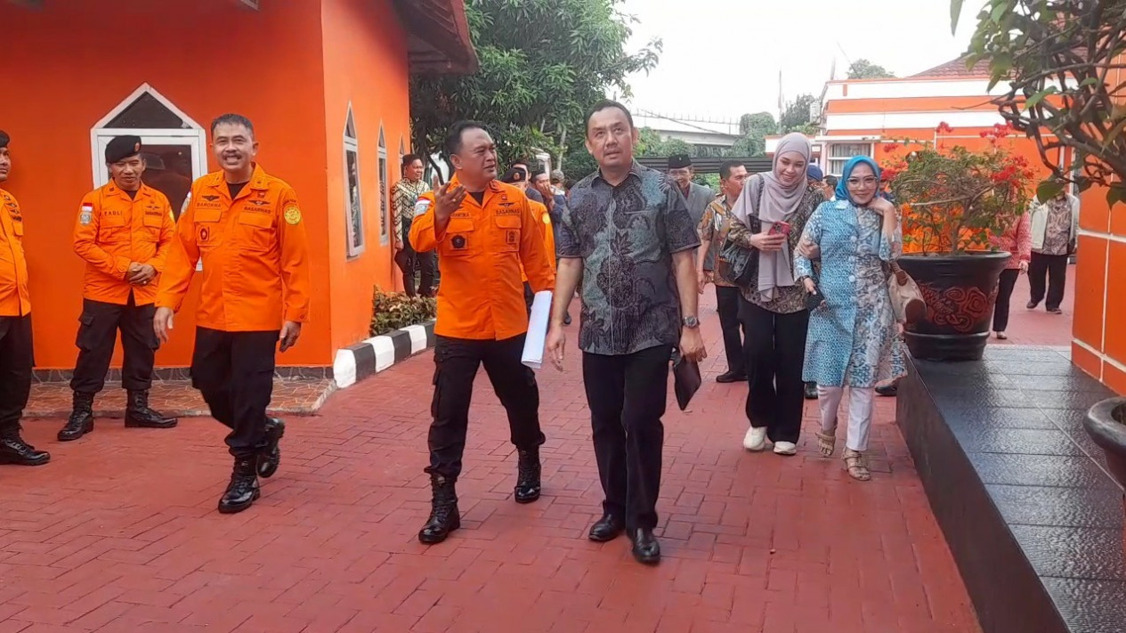 Anggota DPR RI Robert Rouw beserta rombongan saat berkunjung ke kantor Basarnas di Palembang.