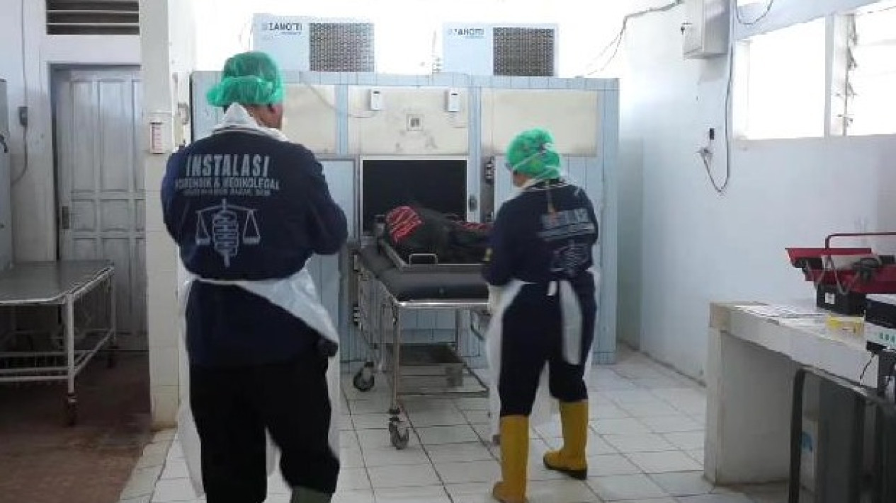 Tim Disaster Victim Investigation (DVI) dan Bidang Kedokteran dan Kesehatan (Biddokes) Polda Lampung melakukan proses autopsi terhadap mayat tanpa kepala di Rumah Sakit Bob Bazar Kalianda, Lampung Selatan.