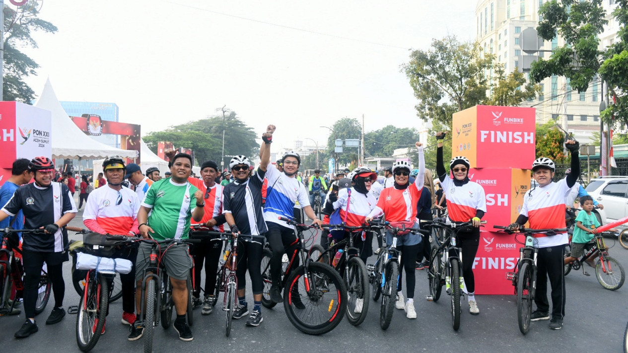 Medan,tvOnenews.com - Panitia Besar (PB) Pekan Olahraga Nasional (PON) XXI Wilayah Sumatera Utara (Sumut) bersama Dewan Perwakilan Rakyat Daerah (DPRD) Sumut menggelar Funbike untuk menyosialisasikan Pekan Olahraga Nasional (PON) XXI Aceh-Sumut pada masyarakat.