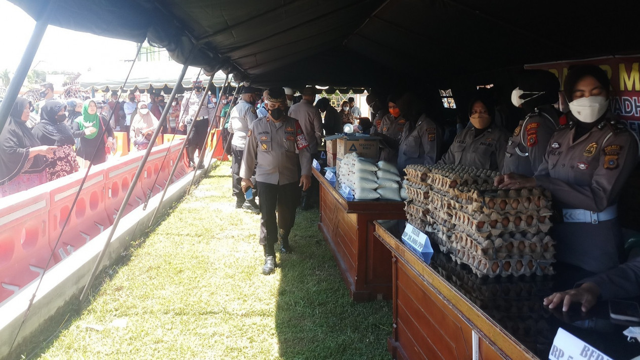 "Ada sejumlah bahan pokok yang dijual murah, untuk membantu meringankan beban warga di tengah pandemi Covid-19, apalagi saat ini harga pangan sangat tinggi, sehingga polisi hadir untuk membantu warga," sebut Waka Polres Aceh Barat, Kompol Asa Putra, Jumat (8/4/2022).