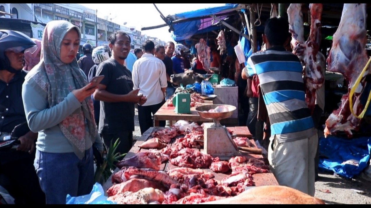 Aceh Barat, Aceh - Harga jual daging jelang Lebaran di Pasar Bina Usaha (PBU) Meulaboh, Aceh Barat, menyentuh angka Rp180 ribu per Kilogram. Kenaikan harga daging ini akibat tradisi meugang menyambut lebaran.