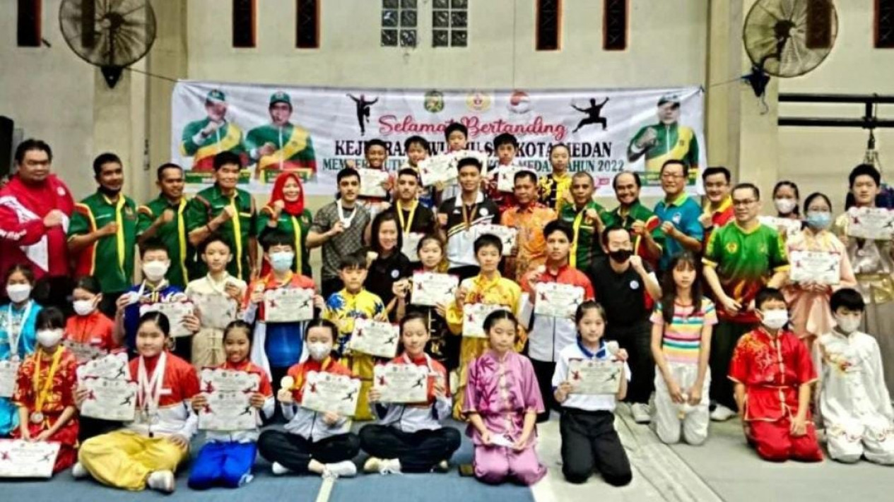 Medan, Sumatera Utara - 94 atlet wushu bersaing ketat untuk memperebutkan medali, pada Piala Walikota Medan 2022, di Padepokan Yayasan Kusuma Wushu Indonesia (YKWI), Jalan Wushu, Medan.