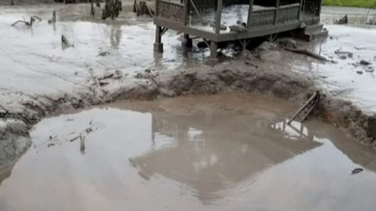 Lubang sumur bor tersebut menyemburkan lumpur bermaterial pasir, bebatuan kecil dan dikhawatirkan mengandung campuran gas.