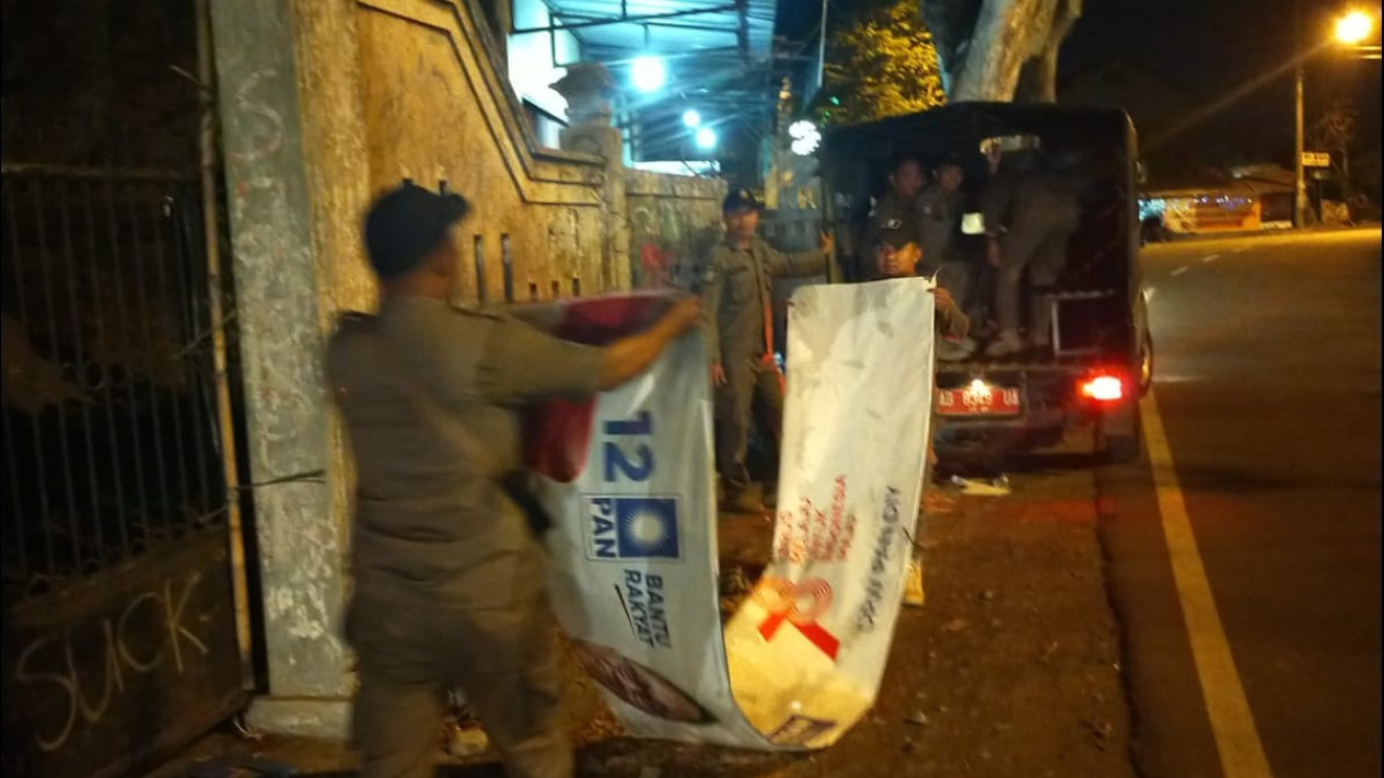 Petugas Satpol PP Kota Yogyakarta terus melakukan razia terhadap baliho bermuatan politik..
