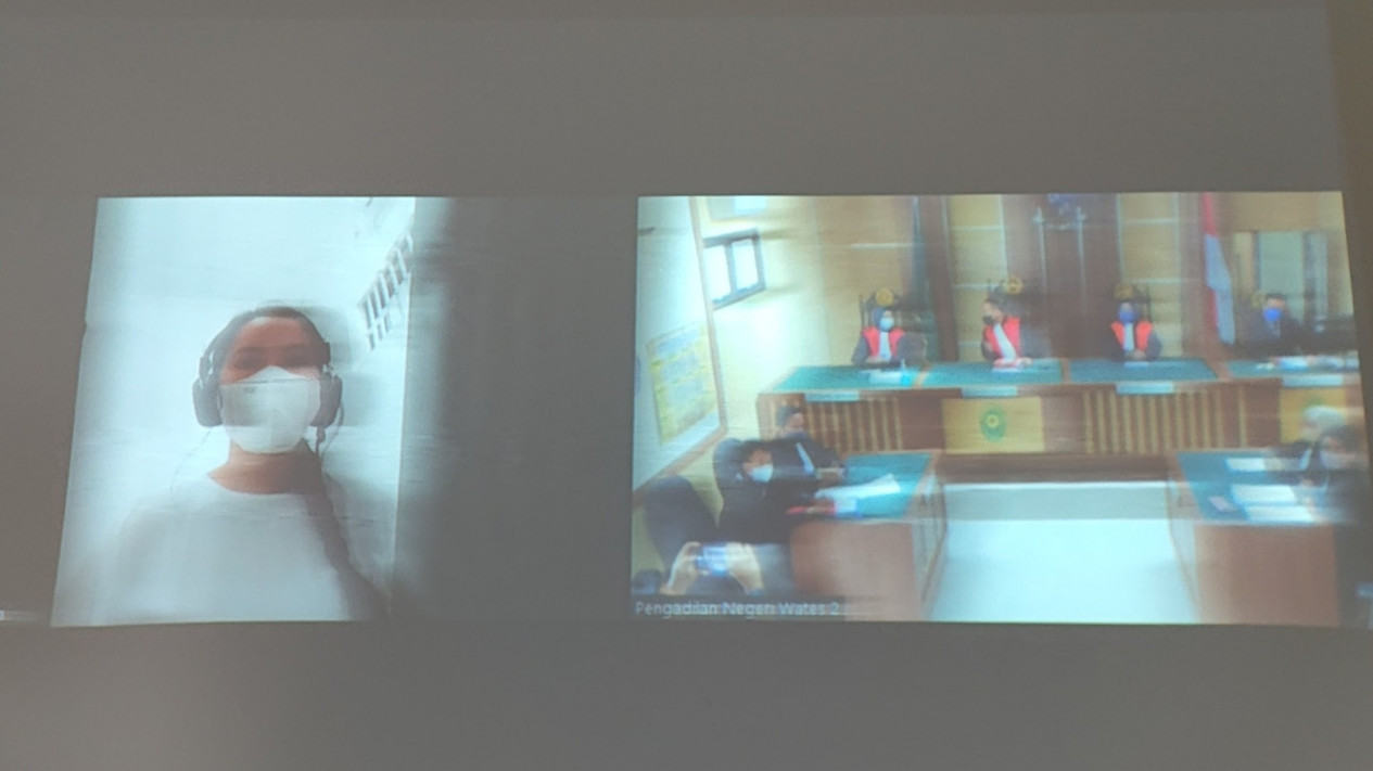 Sidang ini digelar secara daring dan tertutup untuk umum. Terdakwa mengikuti persidangan dari Lapas Kelas II B Yogyakarta atau Lapas Perempuan di Wonosari, Gunungkidul. Sementara JPU, Majelis Hakim dan kuasa hukum terdakwa di Pengadilan Negeri (PN) Wates.