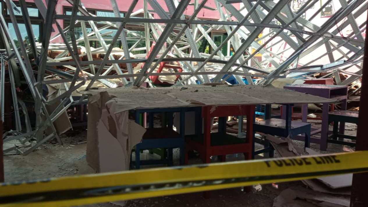 Lokasi ruang kelas yang ambrol, lanjut Kapolsek, berada di lantai dua. Struktur atapnya tidak menggunakan kayu, tetapi baja ringan.