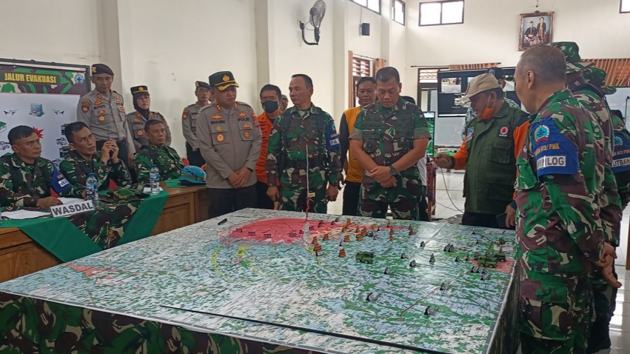 TNI Angkatan Darat dalam hal ini Korem 072 Pamungkas menggelar latihan dan simulasi penanggulangan bencana erupsi Gunung Merapi, Kamis (1/12/2022).