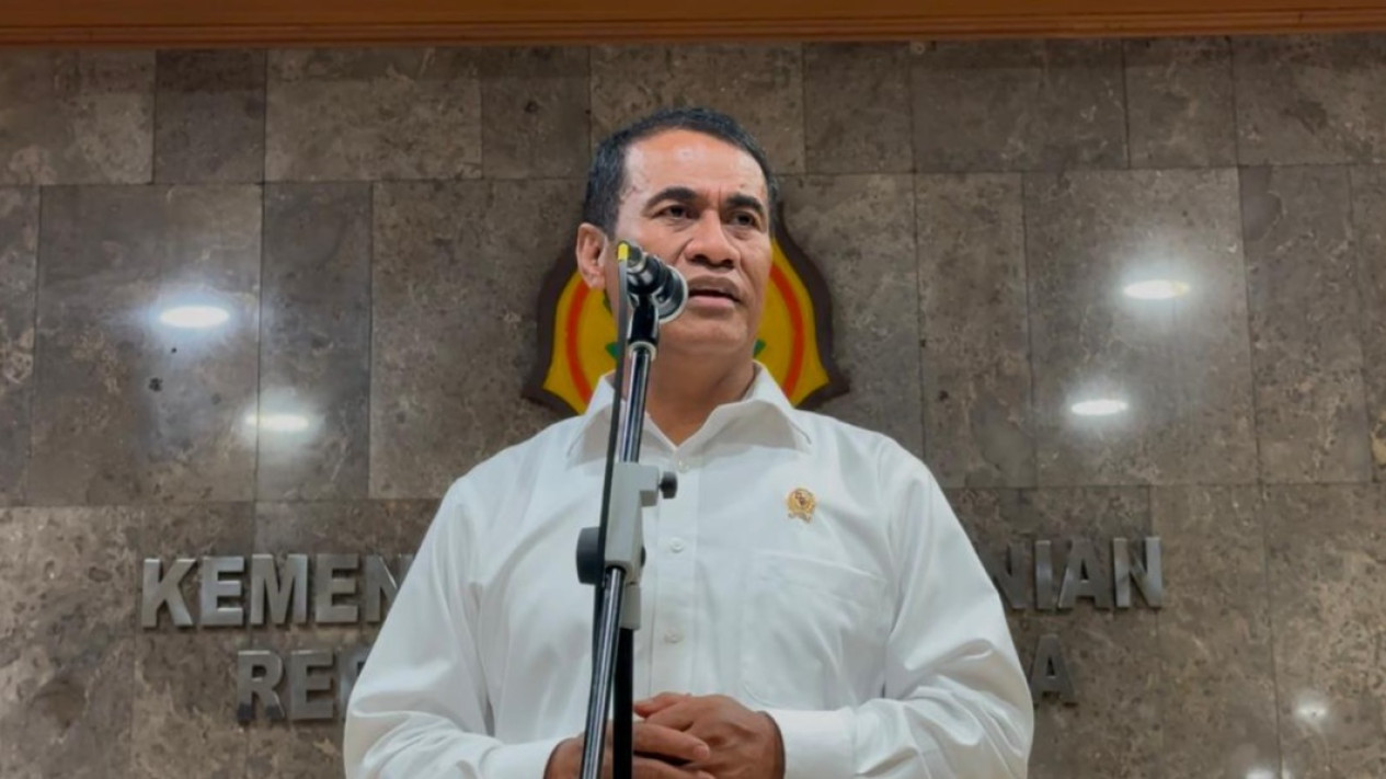 Mentan Amran dalam konferensi pers setelah Rapat Pimpinan (Rapim) Kementan soal Kesiapan Produksi Pangan Jelang Nataru dan Masa Tanam 2025, di Kantor Pusat Kementan, Jakarta, Senin (23/12/2024)..