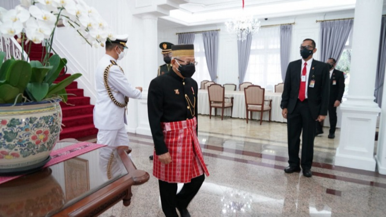 Nampak pula Wakil Presiden Ma’ruf Amin mengenakan pakaian adat dari daerah Sulawesi Barat. Pakaian adat Suku Mandar yang dikenakan Wapres Ma’ruf tampak sederhana, dengan filosofi terkait orang Suku Mandar harus gesit dan cekatan dalam bekerja.