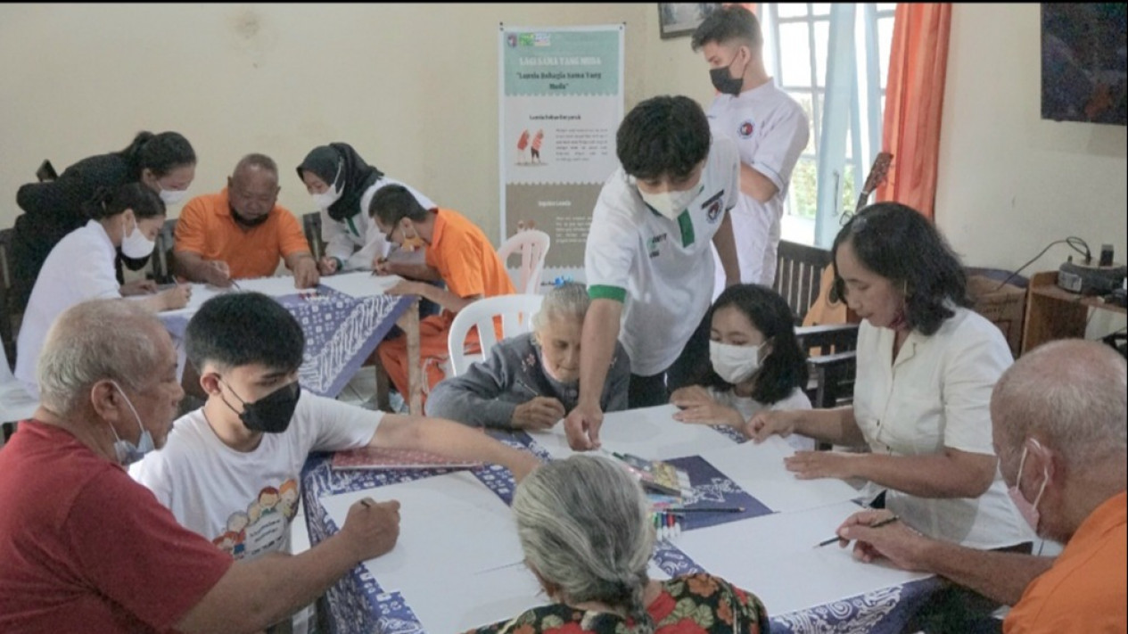 Hal ini pula yang mendorong para mahasiswa Program Studi Ilmu Keperawatan Universitas Kristen Satya Wacana (UKSW) menggelar kegiatan menggambar bersama para penghuni Panti Wreda Mandiri Salib Putih yang terletak di Jalan Merbabu, Kota Salatiga, Jawa Tengah, Selasa (26/4/2022).