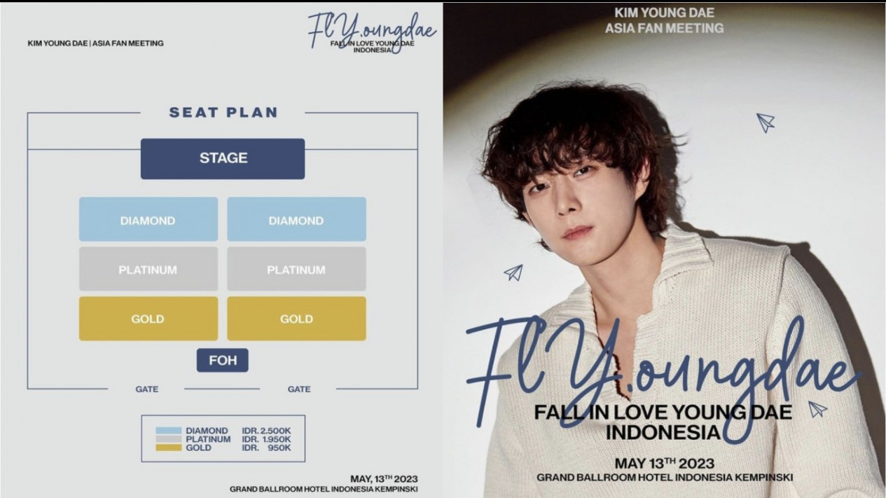 Fan meeting bertajuk FLYoungdae : Fall In Love Young Dae yang dipromotori oleh Sadananda Global ini akan diselenggarakan pada 13 Mei 2023 di Grand Ballroom Hotel Indonesia Kempinski, Jakarta Pusat.