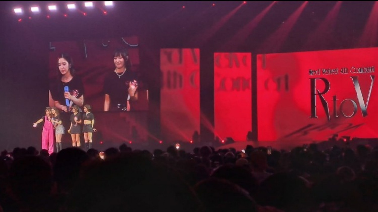 Tata panggung yang ciamik dan lighting yang mendukung, muncullah Irene, Seulgi, Wendy dan Yeri di panggung pada pukul 14.40 WIB, yang diiringi sorak sorai dari para ReVeluv, sapaan akrab penggemar Red Velvet.