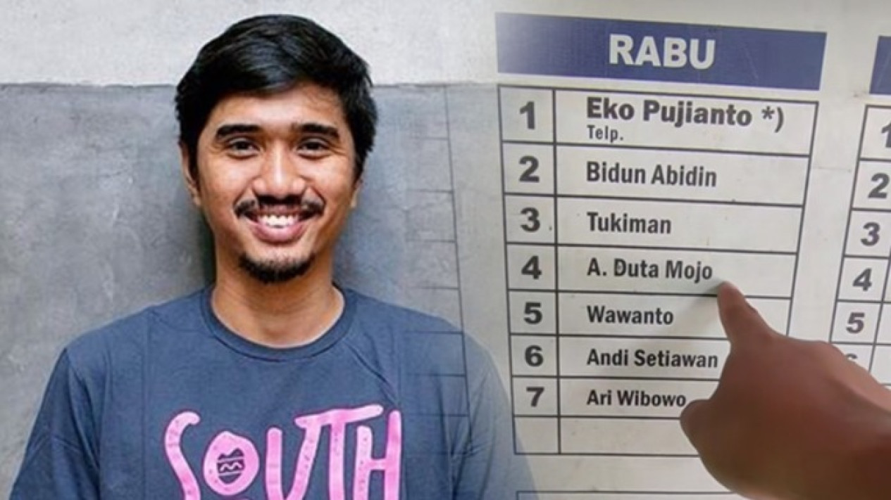 Suami Adelia Lontoh ini mendapat giliran ronda setiap hari rabu bersama enam orang lainnya. Pria yang beristirahat di pos ronda tersebut kemudian menunjuk nama ‘A. Duta Mojo’ pada papan daftar ronda warga tersebut.