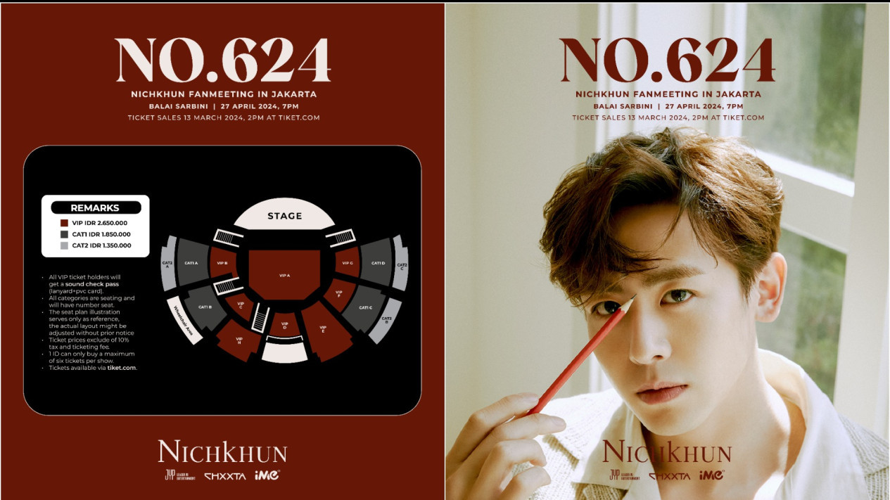 "Dear Indonesian HOTTEST! We are pleased to announce Nichkhun Solo Fanmeeting exclusively in Jakarta NO.624 : NICHKHUN FAN MEETING IN JAKARTA," tulis @ime_indonesia.