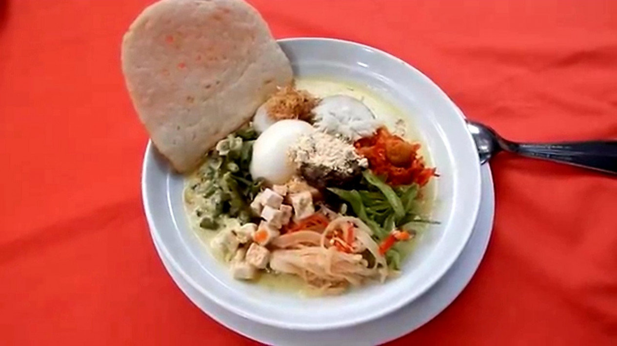 "Nah, kalau lontong Cap Go Meh itu adalah hantaran komplit, yang satu porsinya berisi 14 jenis masakan. Ada lontong, sambel goreng ati, sambel goreng tahu, sambel goreng rebung, opor ayam, telur, bubuk kedele, abing atau parutan kelapa berasa manis, docang atau parutan kelapa berasa gurih, sayur lodeh, abon sapi, acar, dan kerupuk udang," lanjutnya.