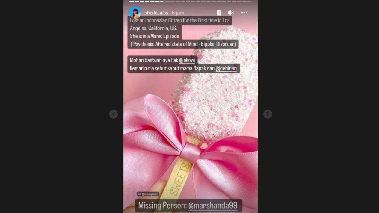 Melalui unggahan di instagram story Sheila Salsabila, Marshanda dikabarkan sudah dua hari menghilang di Los Angeles, California, Amerika Serikat hingga saat ini