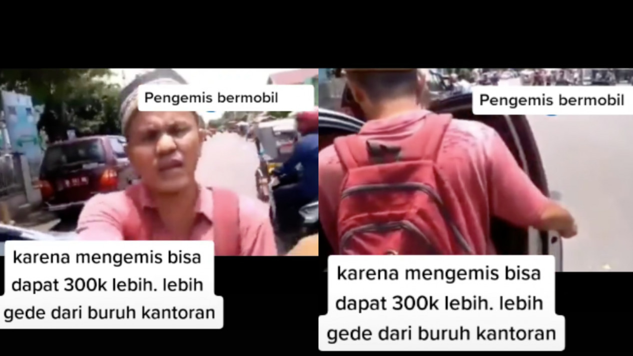 ¨Pengemis bermobil, karena mengemis bisa dapat 300k lebih. Lebih gede dari buruh kantoran,¨ bunyi keterangan dalam video.
