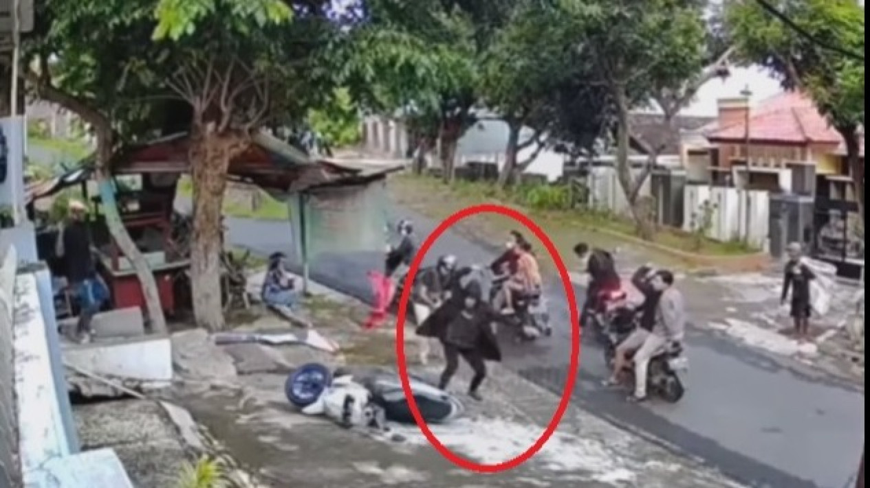 Dalam unggahan video viral itu yang terekam CCTV, memperlihatkan seorang warga terburu-buru memakirkan motornya dan berlari ke rumah atau gang untuk mengamankan dirinya.