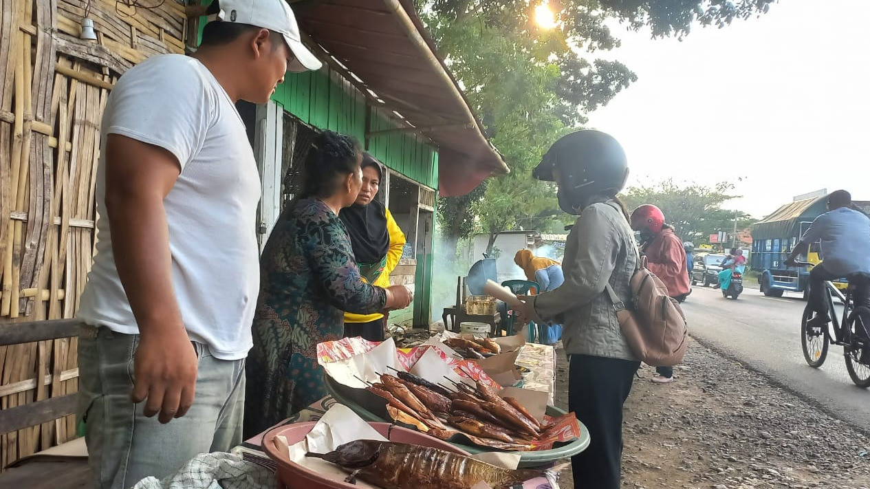 “Ikan yang diasap ini adalah ikan laut yang diambil dari nelayan. Ikan yang kami sajikan ini masih segar,” kata Zainal Murtadho, penjual ikan asap, Selasa (4/4/2023).