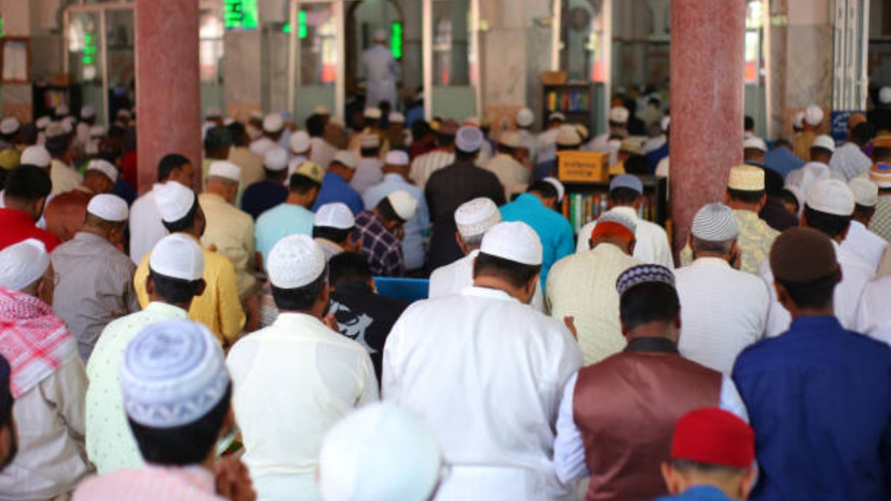 Ilustrasi jemaah shalat Jumat mendengar naskah khutbah Jumat singkat dari khatib saat ceramah.